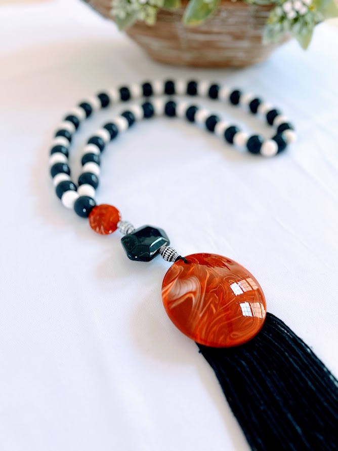 Colar ELEGANCE com pedras em resina marinho, branco e vermelho, facilmente adaptável em toda decoração.