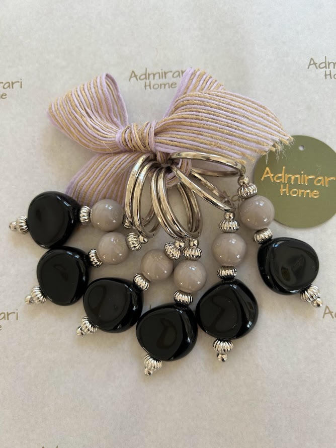 Valor unitário - Porta Guardanapo pedras em resina preta e cinza nude, detlhes em niquel.